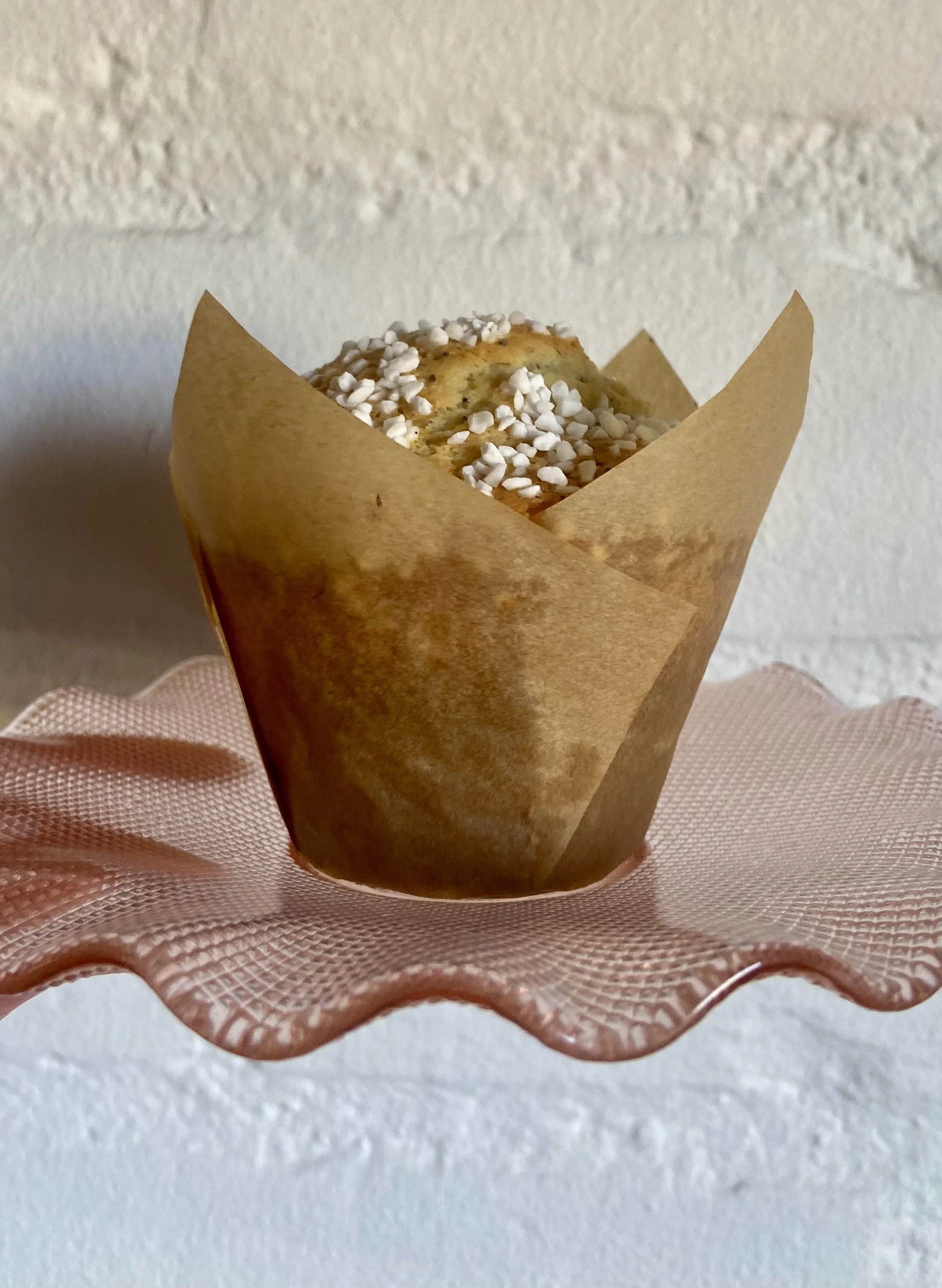 For making muffins at home, I like to use the large tulip style liners. They allow you to bake a larger muffin, which feels a little more substantial like a muffin from a bakery. You can order them on Amazon or Michaels or find them in a specialty culinary shop if you happen to have one near you. You can also just cut squares of parchment to make your own makeshift tulips! If you want to use regular liners for smaller muffins, fill the tins about ¾ of the way full and bake for 5 minutes at 425F and then 15-18 minutes at 350F.