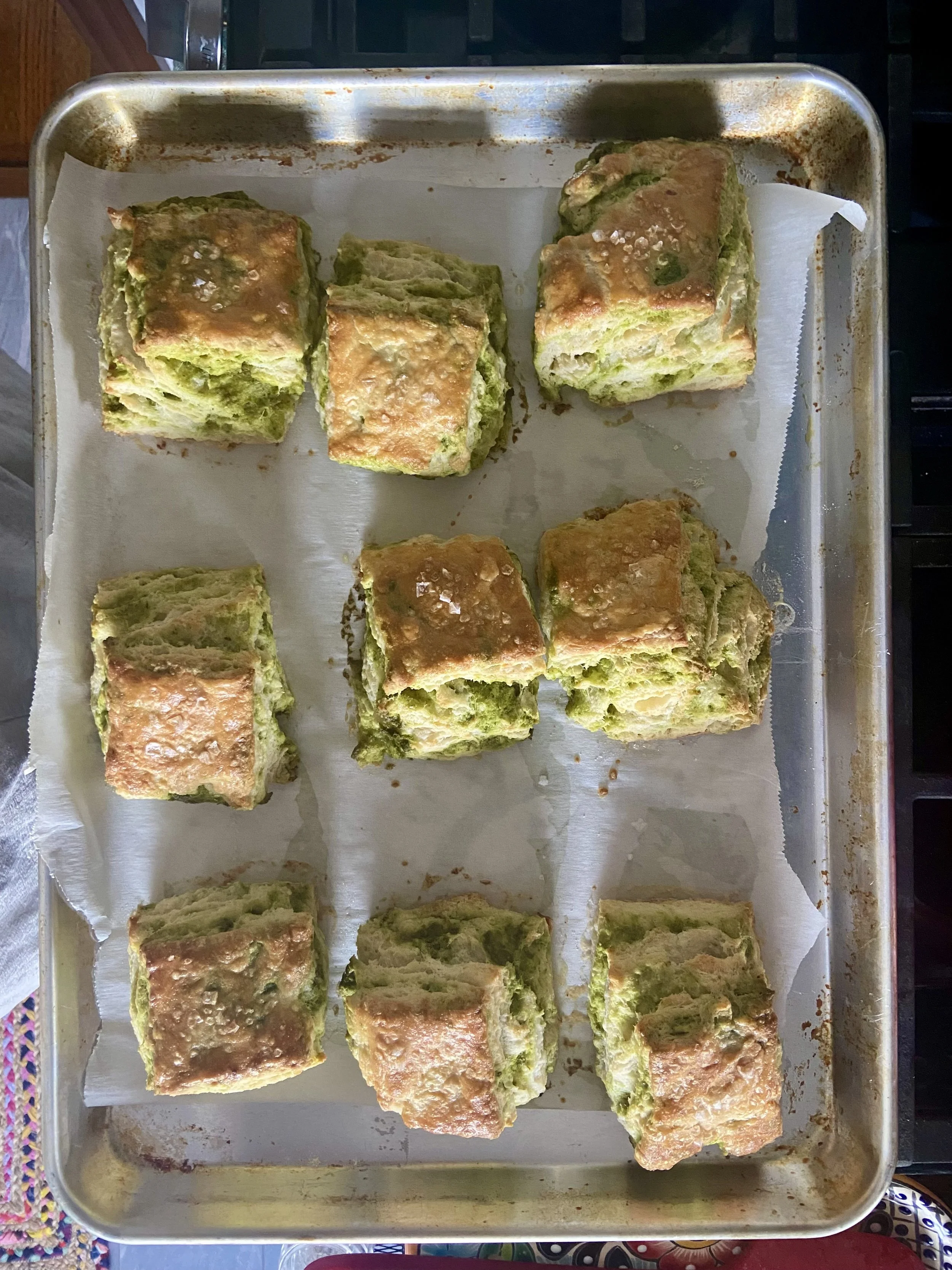 I often like the idea of adding fun stuff into biscuits, but in practice I find that they can easily turn out greasy or weighed down by the additions. But here, the layers of pesto have no negative impact on texture and tons of positive impact on flavor. I tested this recipe at least two more times than I needed, just as an excuse to make them again, and I burned my fingers and mouth on every single test.